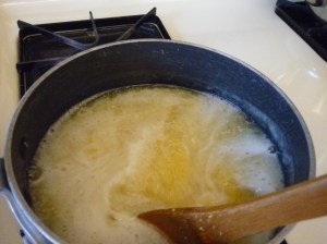 Once it starts to thicken you will want a spatter guard on it. You should stir frequently, instead of constantly.