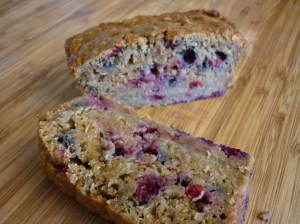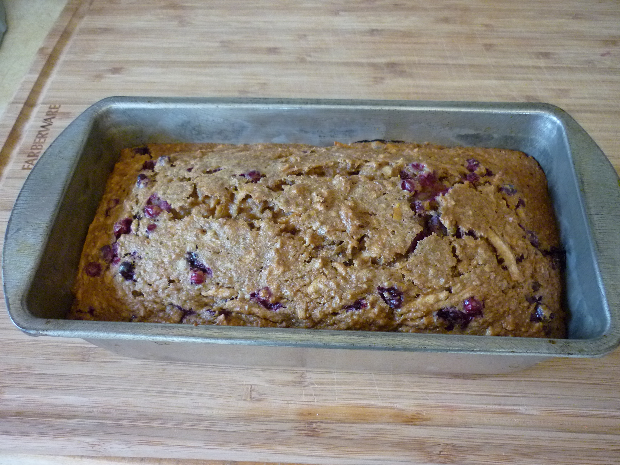 This is based upon a recipe from Anja’s Food 4 Thought. It’s very, very simple. I’m afraid it was a little too moist for me, but the fan club living at my house raved about it, so here I am, second day in a row, making this cake. The first one didn’t last long . . . at all. Note that lingonberries (also called Alaskan low-bush cranberries) are very commonly found in Alaska and I usually have gallons of them in my freezer. If a recipe calls for cranberries I use lingons instead. They are more tart than cranberries and will sometimes require additional sweetener. This particular recipe doesn’t use many “cranberries” and tastes good without the additional sugar.