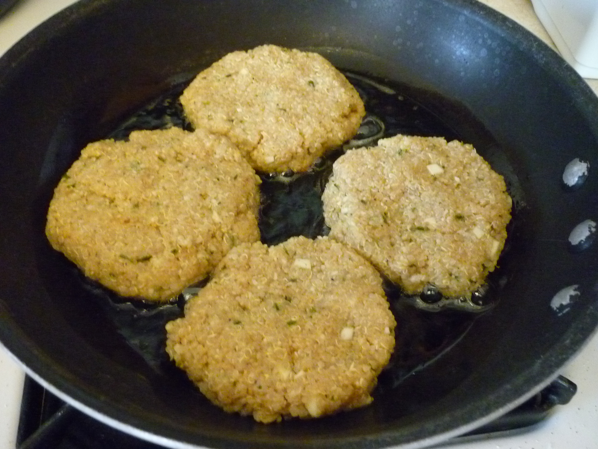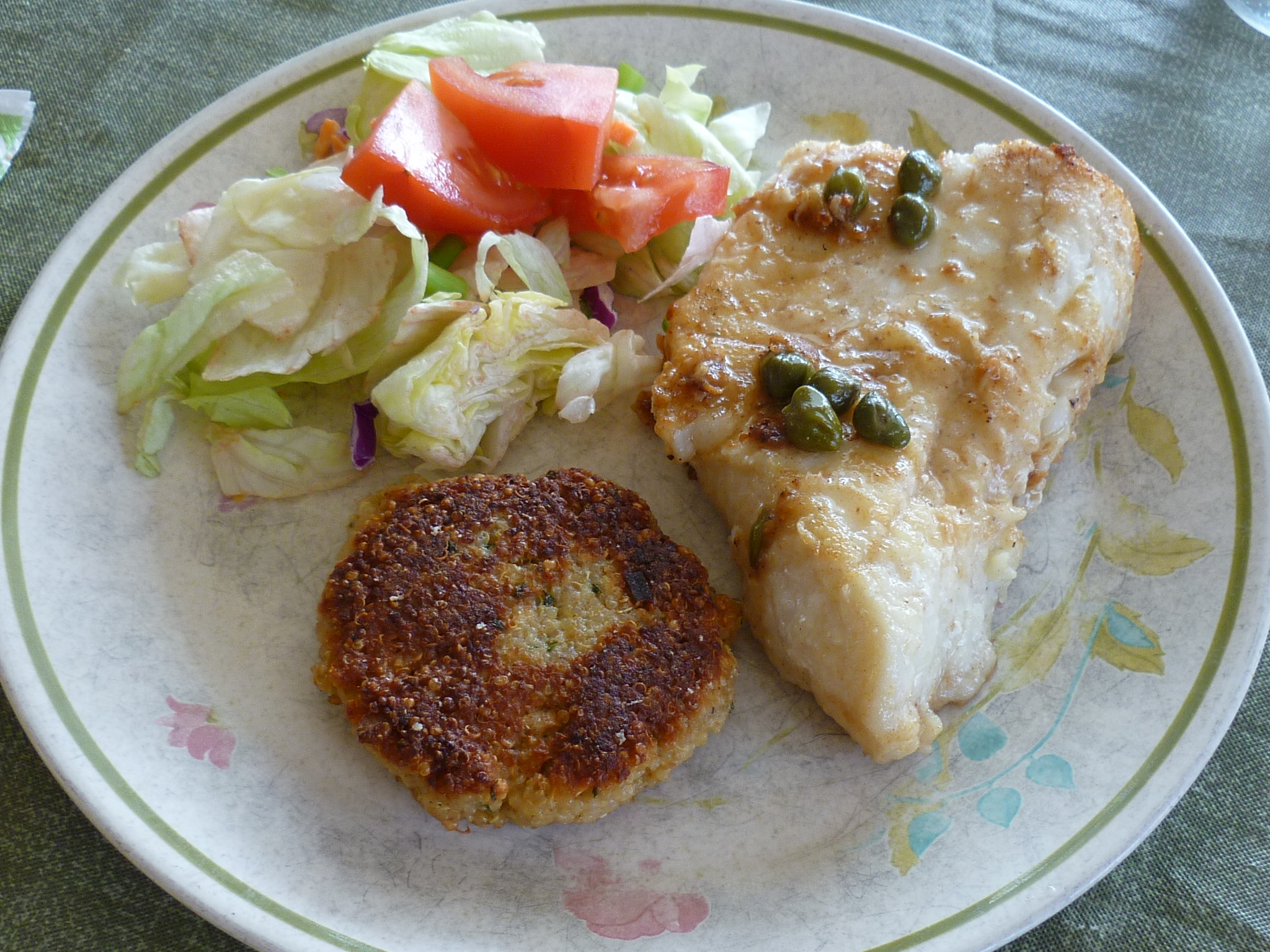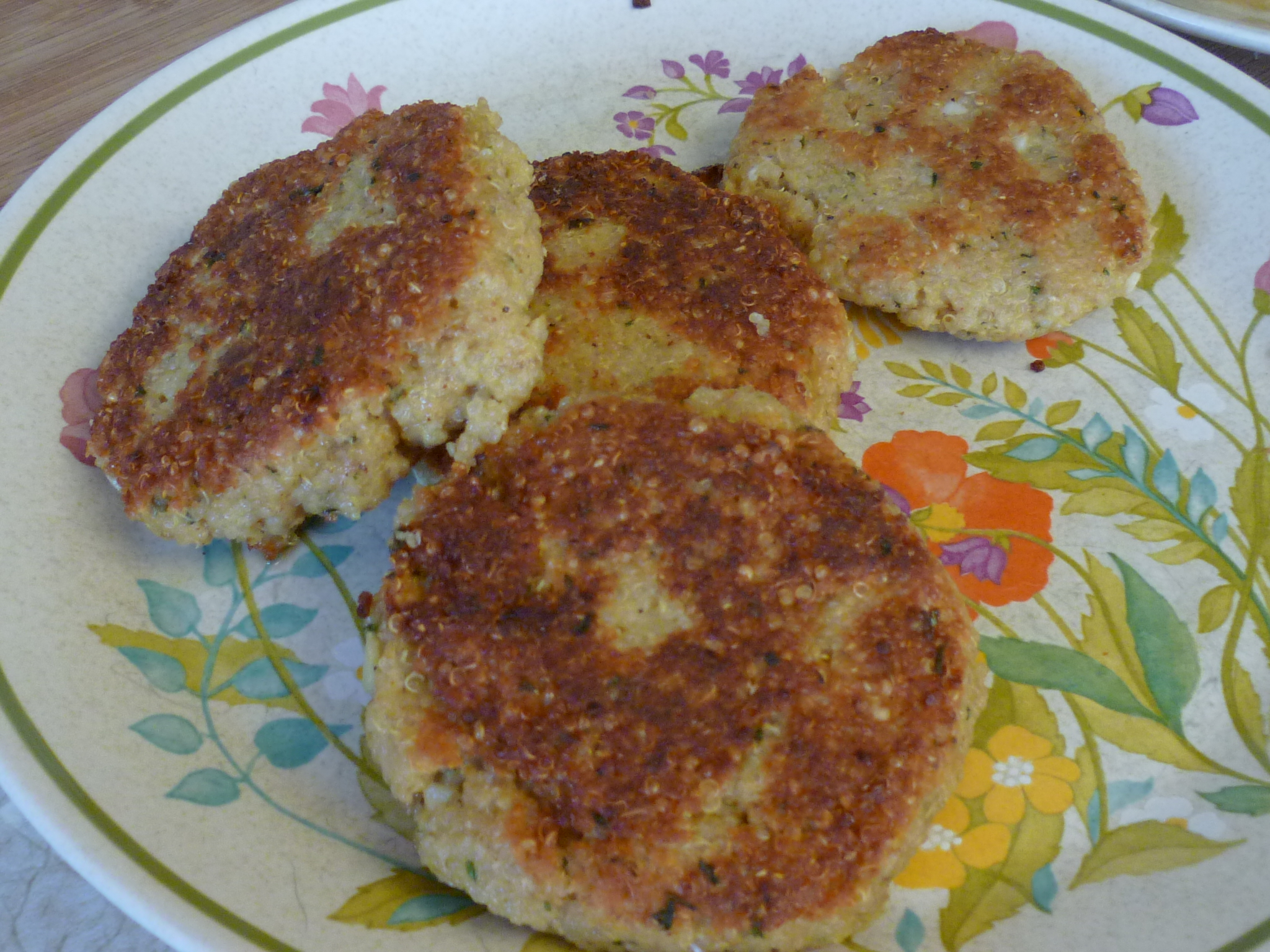 Quinoa is all the food rage nowadays. I’ve tried it a couple times and it’s okay, not that much different from rice. The blog Portuguese Girl Cooks has an awesome recipe for quinoa cakes. Now, I am really impressed. The cakes were simple to prepare, not messy, and came out looking like they are supposed to. They are very flavorful. I could make a batch of these and put them in my son’s lunch box this summer, they make a real firm cake, easy to eat with fingers, but moist inside. Yes, yes, I’m a fan. I served these with the Pan-Fried Flounder and it was a nice combination.