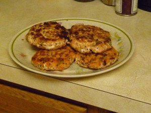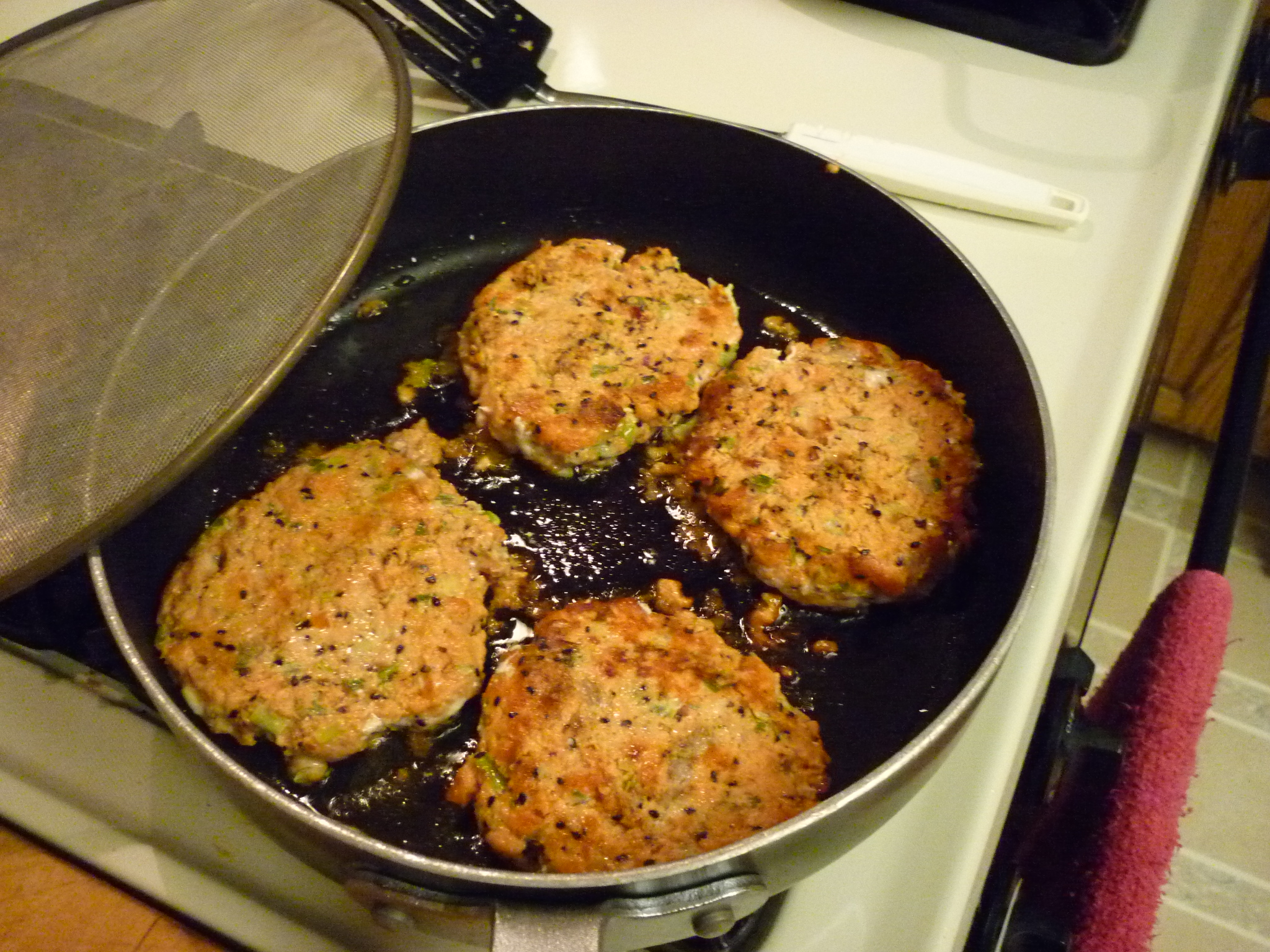 Serve on toasted (and perhaps buttered) buns with Aioli Sauce (ingredients follow) and sliced cucumber, sprouts, tomato, cabbage, whatever.