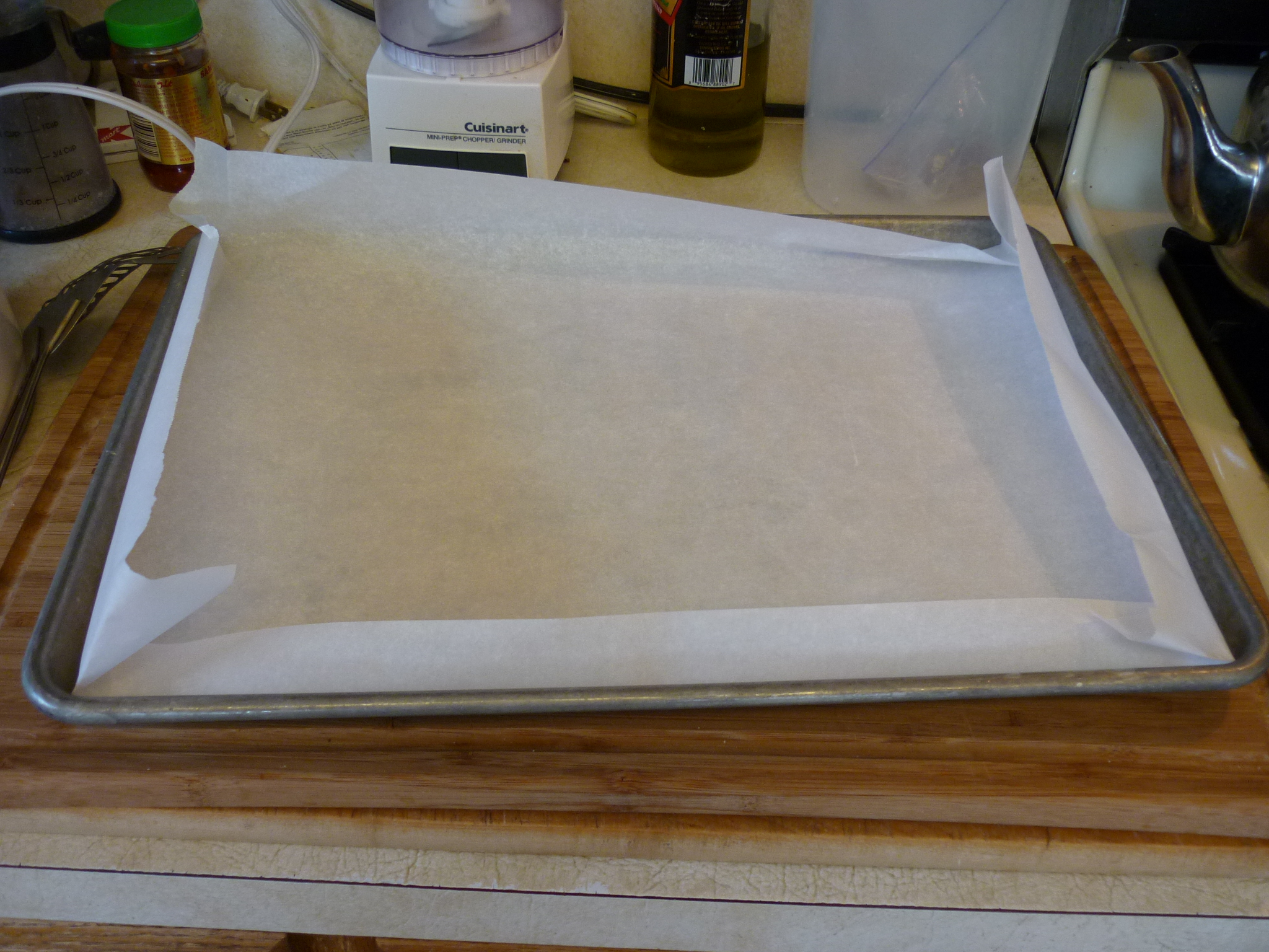 Preheat oven to 350 degrees. Prepare two rimmed baking sheets by covering with parchment paper. Don’t trim the paper too close, make sure to leave enough along the edges to grasp with your fingers.