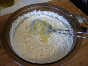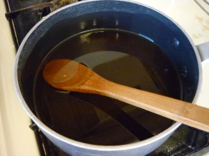 In a sauce pan stir together 1 cup oil (I used canola), 1-1/3 cups honey, 2 tsp. vanilla, 1 tsp. salt. Warm the mixture.