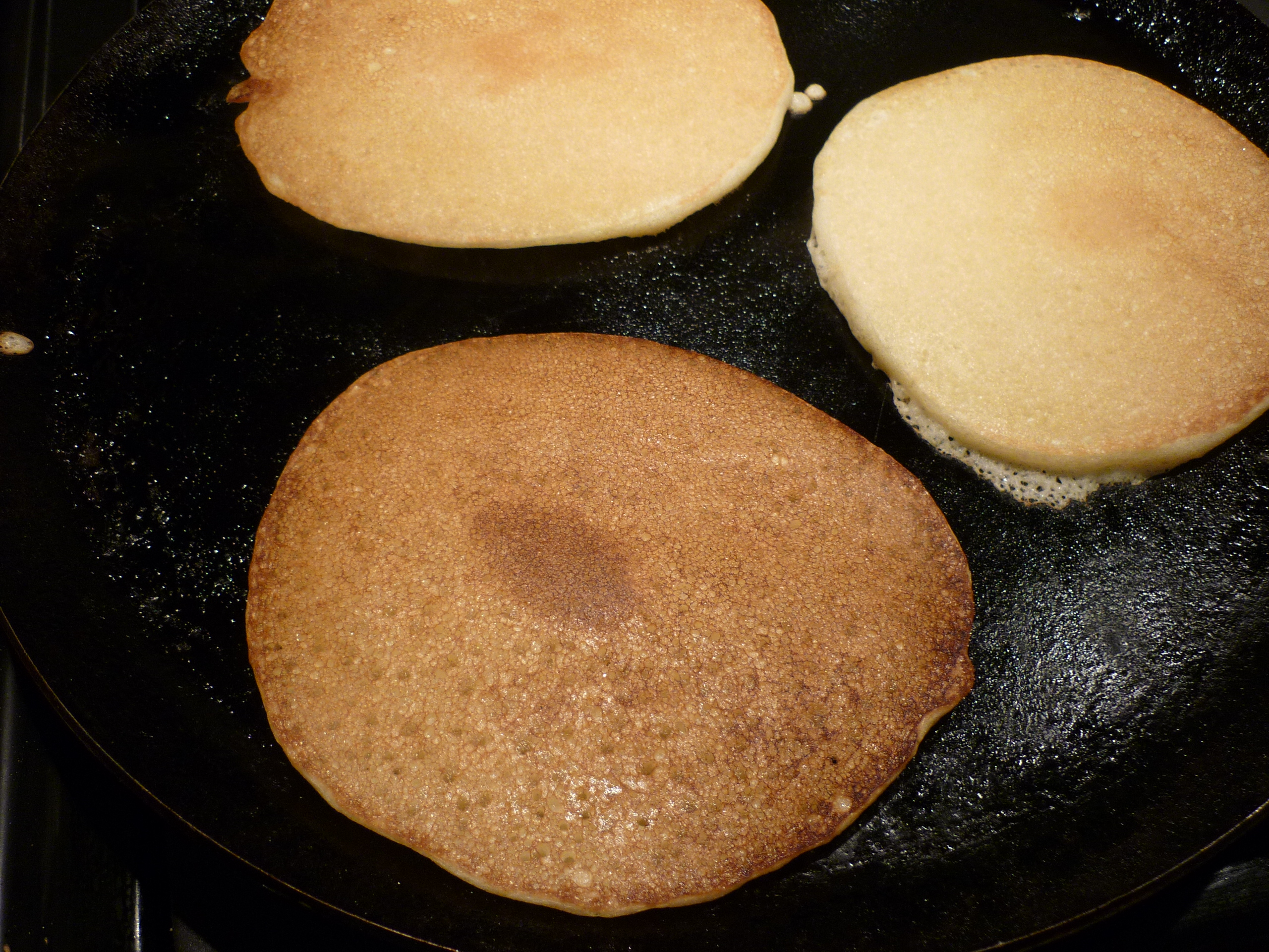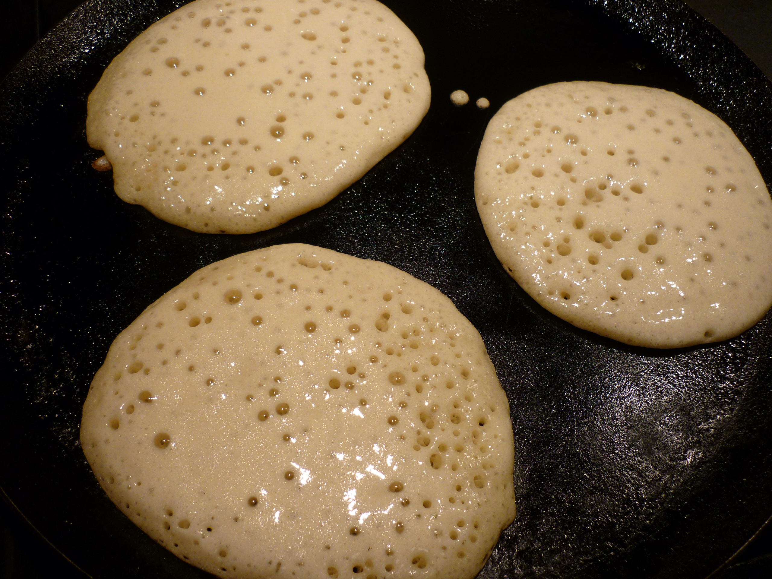The night before you want to make pancakes, either add 2 cups warm water and 2 cups flour to ½ cup starter or make the starter recipe above. [Remember that using the Quick, Overnight Sourdough Starter recipe doesn’t yield much sourdough flavor if used the next day.] The next morning remove ½ cup starter to save and feed for other uses.