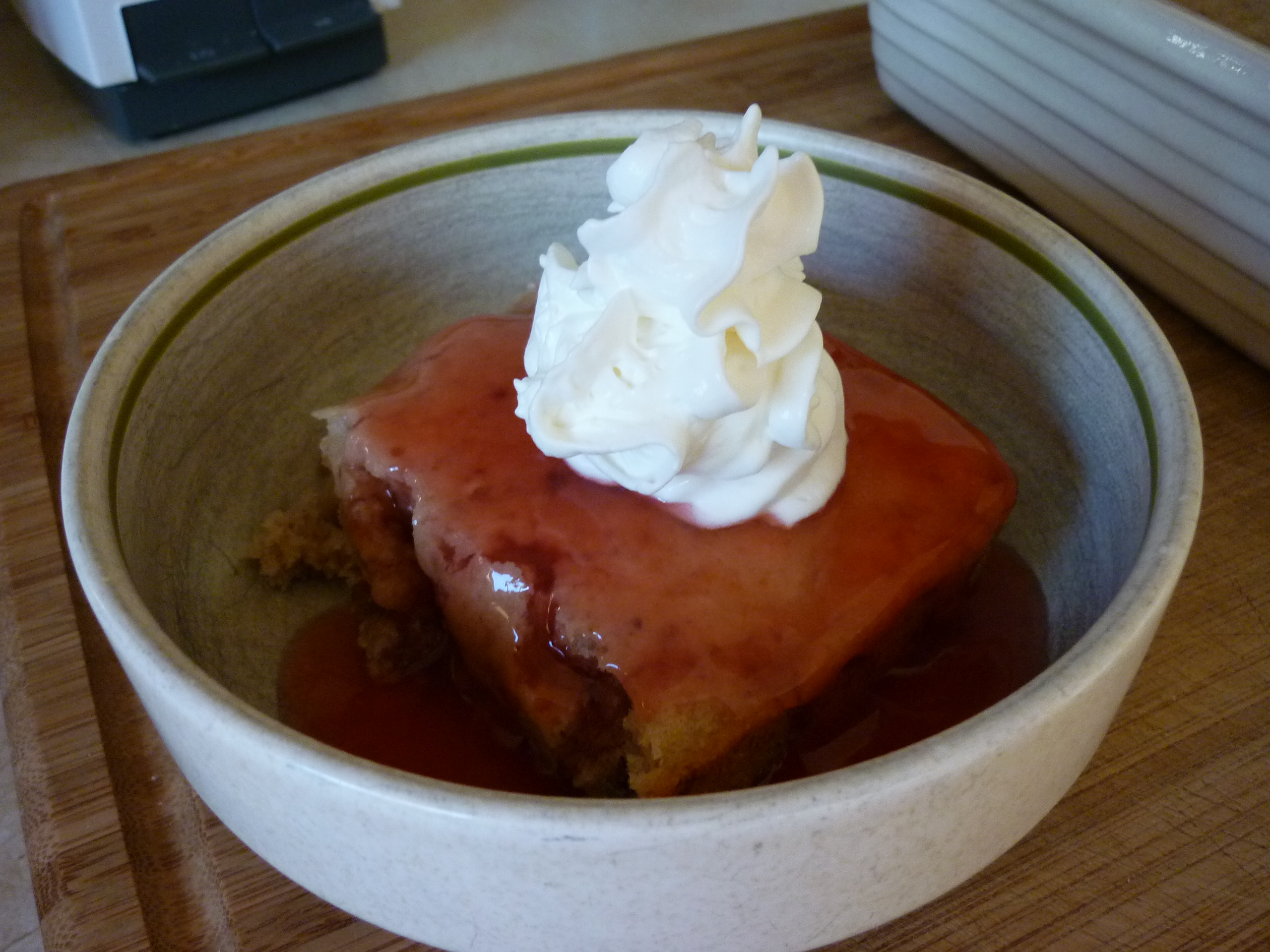 Serve with whipped cream or ice cream, if desired. The sauce is easily re-heated in the microwave. I always end up with too much sauce because people eat the leftover cake for breakfast and they don’t bother putting sauce on it.