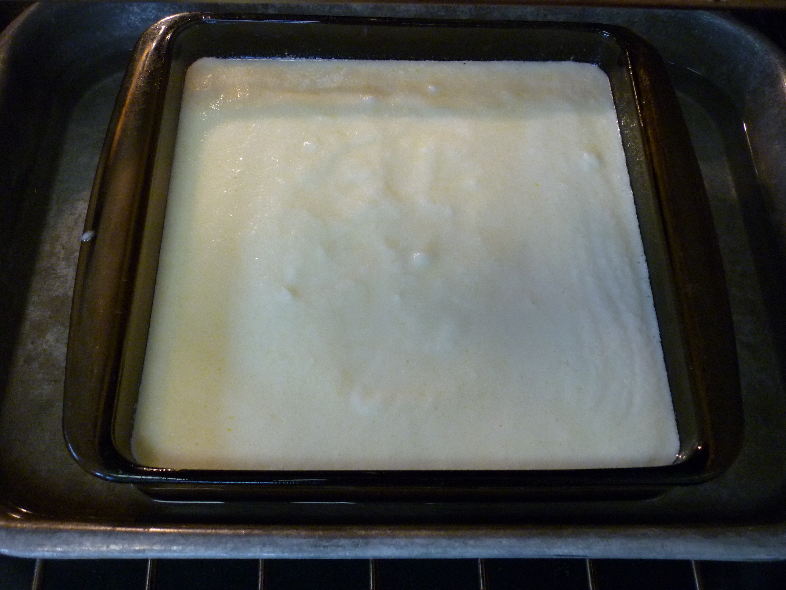 This lemon dessert is baked all in one dish. As it bakes, it separates into a sponge-type cake on the top and a sauce on the bottom. I have figured out a way to do this using just one mixer. Here goes. I’ll list the recipe first and then my own description with a few pictures.