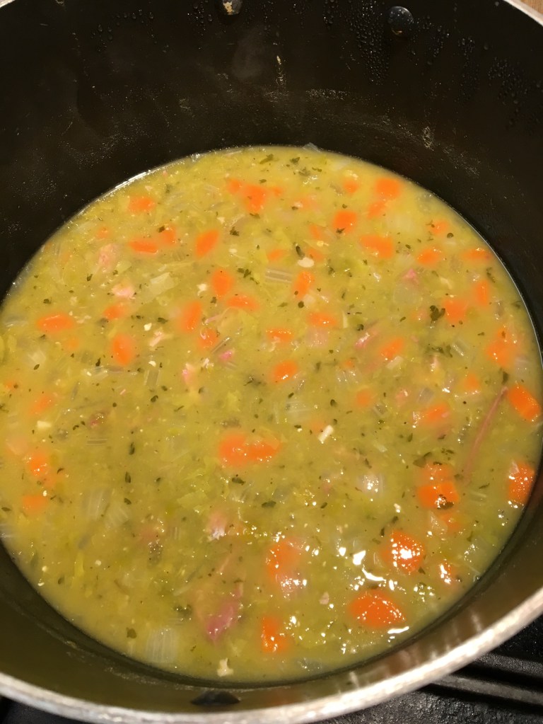 I am a fan of split pea soup. I buy the spiral-sliced fully-cooked hams at Costco and whenever we have ham for dinner, I save the bone to make split pea soup. If I need to cook chicken for a dish calling for shredded chicken meat, then I might cook the chicken in water and use the flavored water for this split pea soup.