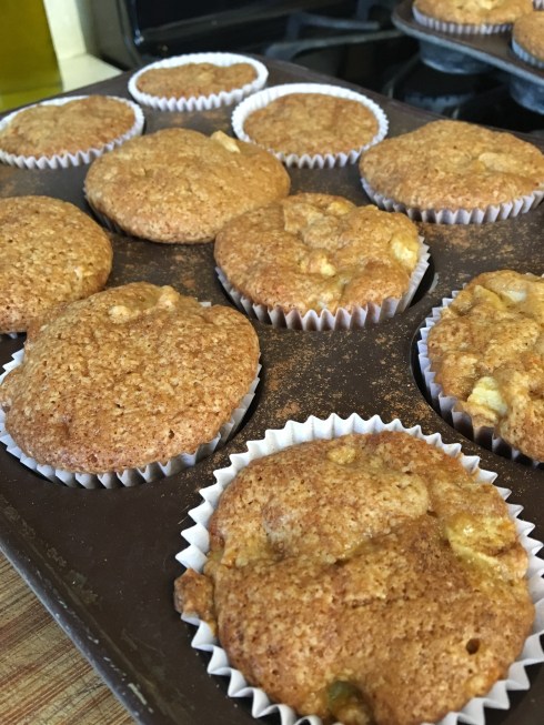 I have made these for many years. The recipe is based on one found in an old Bear Valley Elementary School cookbook: Bear Fare 1993-1994. The original recipe calls for a streusel topping, but I’ve never added that. Too much fuss. Mostly, I make these and toss them into the freezer to eat later. The other day I had about a cup of leftover sweet potatoes, a couple old wrinkled apples, and two leftover egg yolks. I’ll give you this substitute recipe at the end, but just know that’s what’s pictured here.