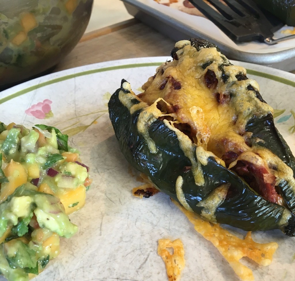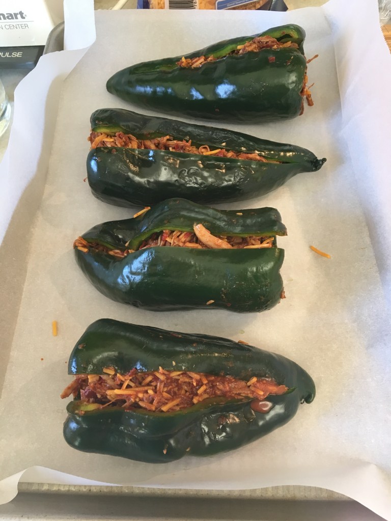 Just so you know, I’ve made stuffed poblanos with all kinds of filling: ground turkey, ground beef, beans, shredded chicken, etc. It doesn’t really matter as long as it holds together. You can use tomato sauce, fresh tomatoes, refried beans, whatever you want as a binder. There are several recipes on Pinterest that give good ideas of various fillings you can use. There is no reason to pre-cook the chiles, just stuff and bake!