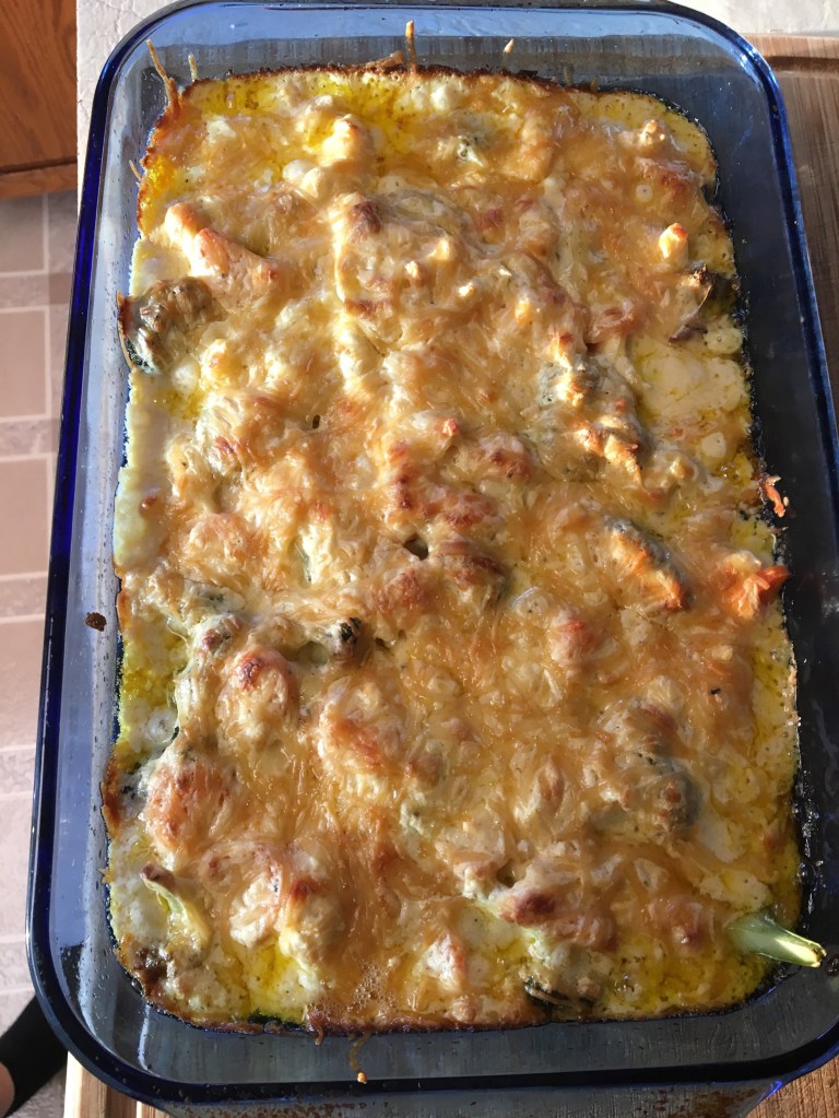 I really wish I could take good pictures. Sigh. This is a super easy and delicious dish that I make quite frequently. The recipe comes from The McCallum’s Shamrock Patch. I have started making half batches because I’m usually feeding only two.
