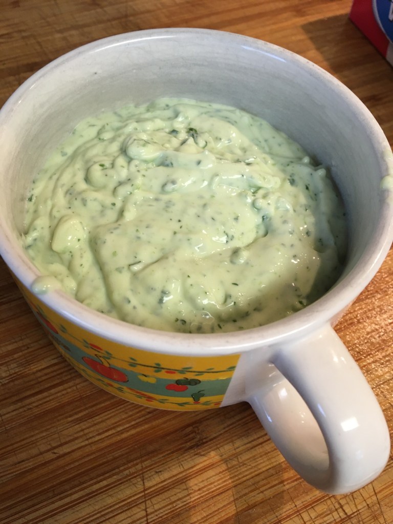 Blend ingredients until smooth dressing consistency. Voila! That’s it. Serve or refrigerate until serving time. Tastes better if you wait a half hour or so. But it’s really good, so just go for it.