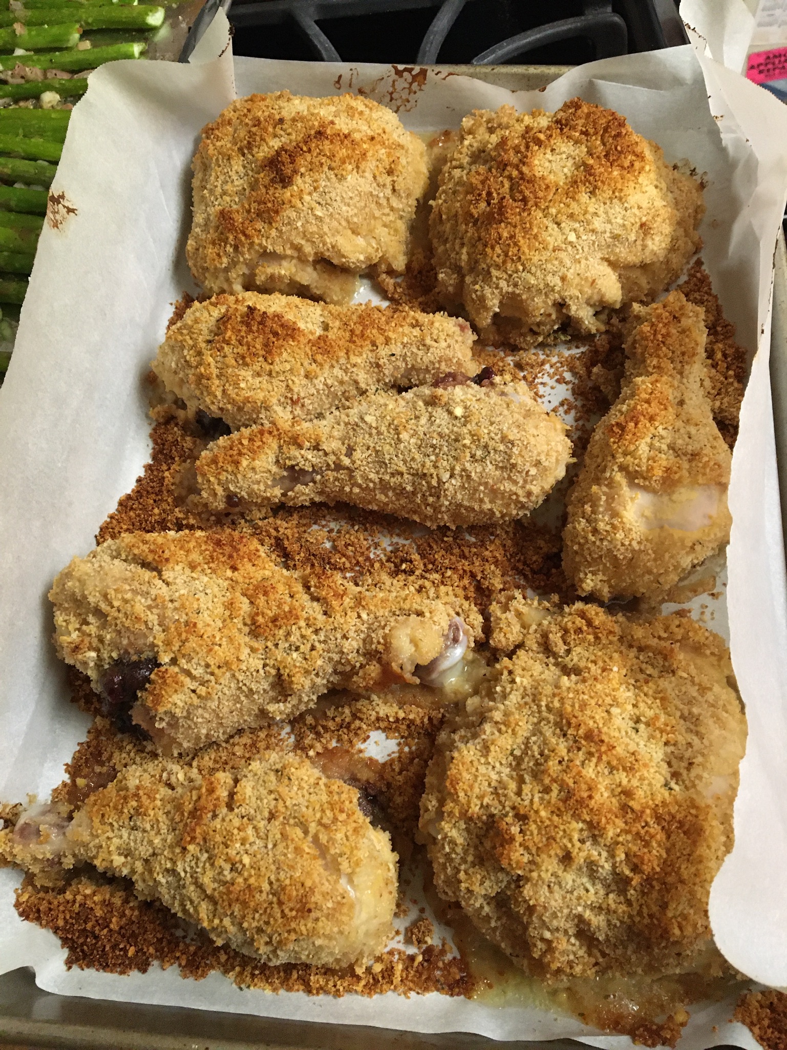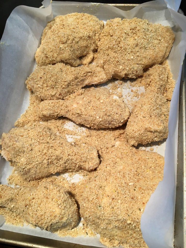I think this originated as an Ina Garten recipe and it morphed from there. I have made it many, many times tweaking a little each time. I hate to run out of bread crumbs before I’m finished breading the chicken, but usually end up throwing some away. I guess it just depends upon how large and what type of chicken pieces you use.