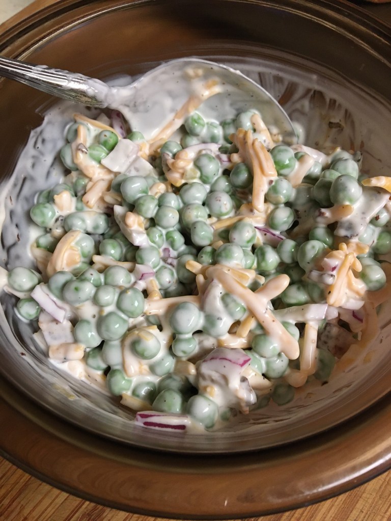 I don’t know when this became such a favorite of mine, but I sure do make it a lot. Yum! This is a gluten-free recipe. I’ll give you the ingredients, but not the amounts. I just throw the food into a bowl and stir it around. I like to serve this with finger food like pulled pork sandwiches or oven-fried chicken.