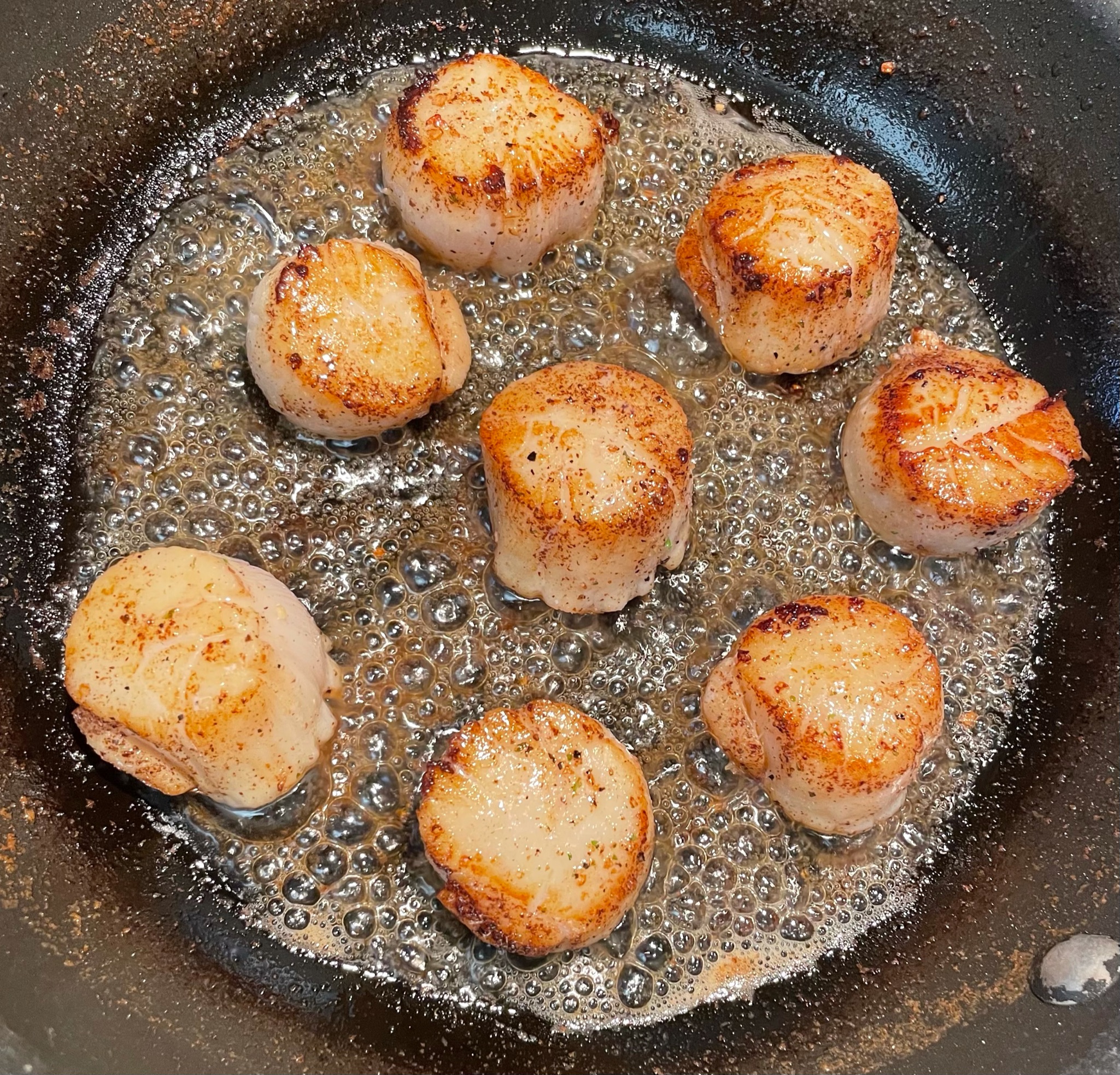 Notes: You may need to add more oil and butter between batches if you’re cooking a lot of scallops. I used my garlic sea salt grind instead of regular salt.