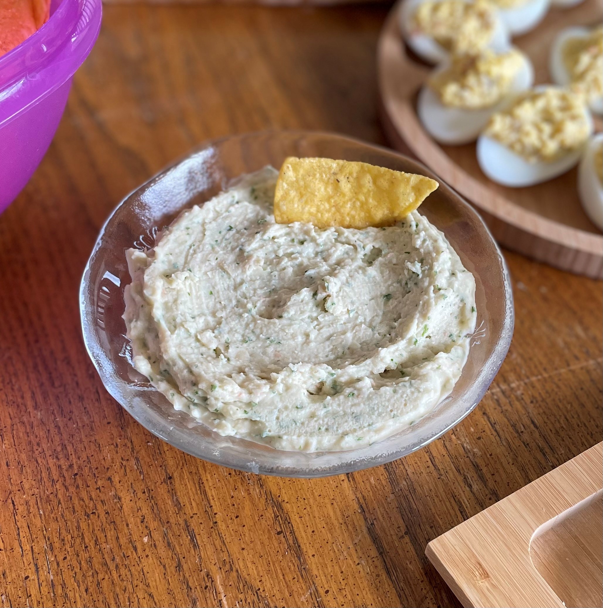 NOTES: This keeps well under refrigeration for a day or two if you need to make it ahead. Be careful not to overdo the garlic. I used three large cloves last time and, wow, that was really strong! I like this dip because it’s made from ingredients I usually have on-hand, like fresh parsley. Its lack of wheat, rye, dairy, fish, and seafood makes it so everyone in the family can enjoy it. You could try any kind of white bean, instead of cannellini. I happen to like the flavor of the cannellini.