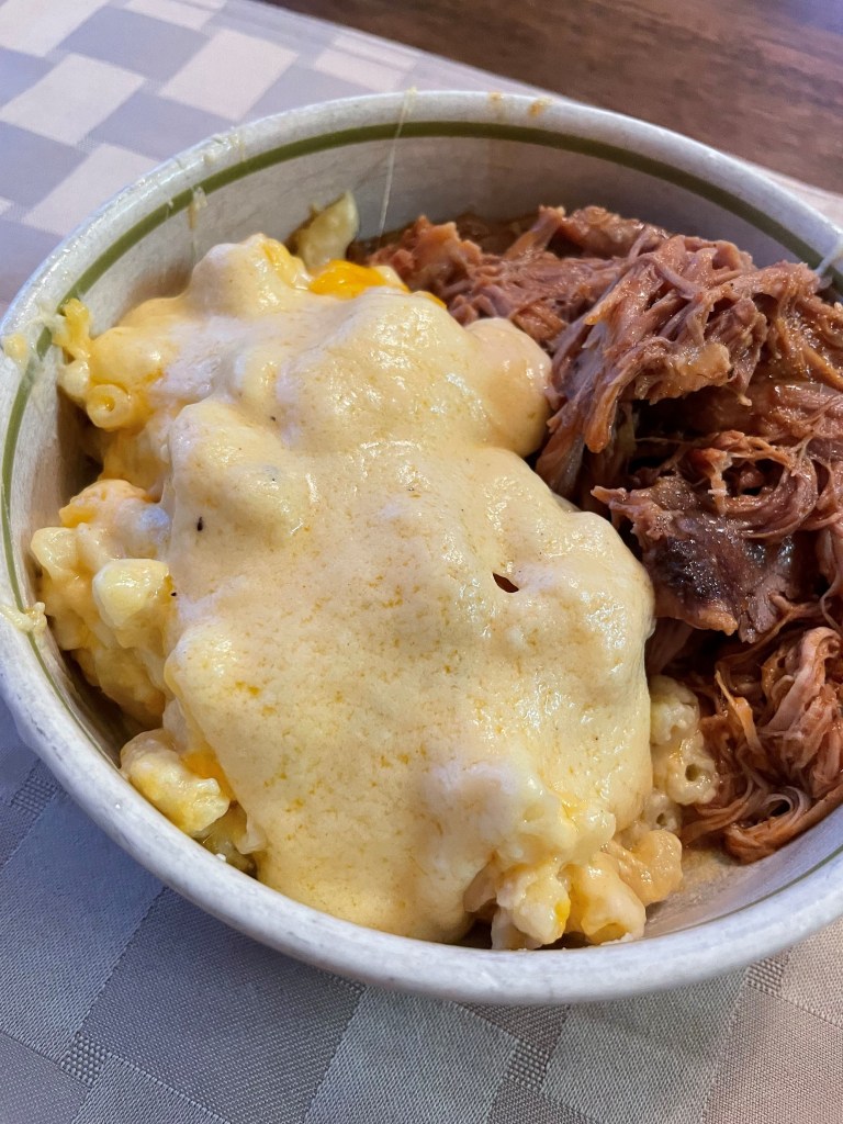 This is simply awesome with my Barbecue-Style Pulled Pork. One half the bowl pulled pork and the other half mac and cheese with extra sauce. You’re welcome.