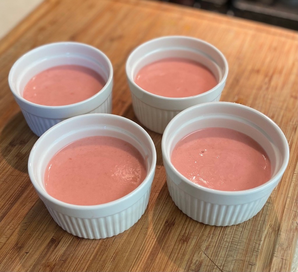 While that’s going on, in your stand mixer, using the whisk attachment, whip egg whites until stiff peaks form. Switch to the beater attachment.