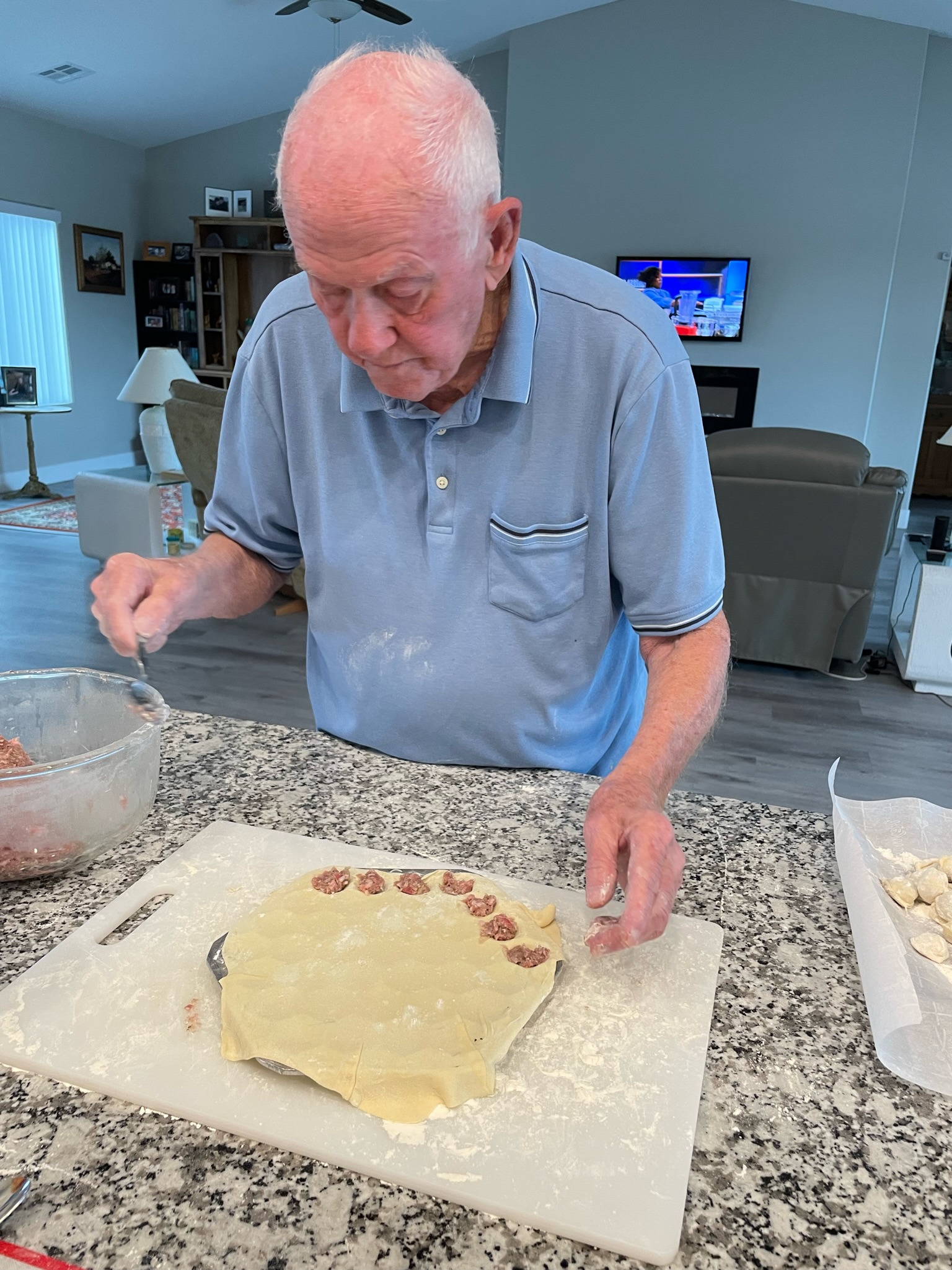 It seems unlikely that you will use all these pelmeni at a single seating. Mom and Dad say that these do not freeze well after they are cooked and all the recipes I’ve seen call for them to be frozen prior to cooking. You can either set a layer of them into the freezer until frozen and then drop them into bags for long-term freezer storage, or you can roll the fresh pelmeni, a few at a time so they remain separated, in cling wrap and place into a bag and then freeze. To cook, we are going to put them directly into boiling water from frozen, wait for the water to come back to boil, and simmer for ten minutes. That’s the plan anyway.