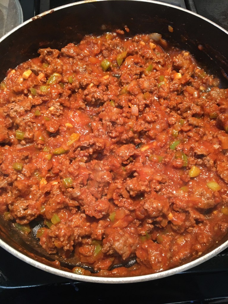 My brother has recently gifted us several pounds of ground moose, so that’s what I used, but ground bison or ground beef will work just as well. I’m basing my recipe on fivehearthome.com‘s. This is a really quick week-night dinner for busy people.