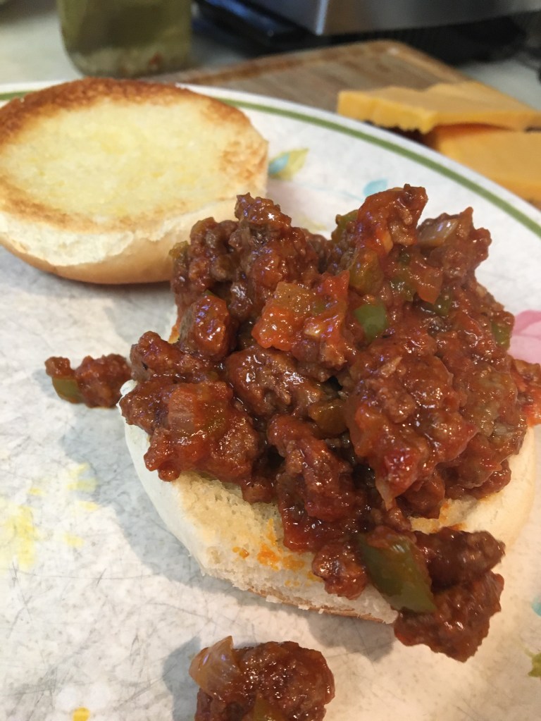 Butter the hamburger buns and toast under the broiler. Dollop the ground beef mixture onto the prepared buns. Add your favorite toppings. Chow down!