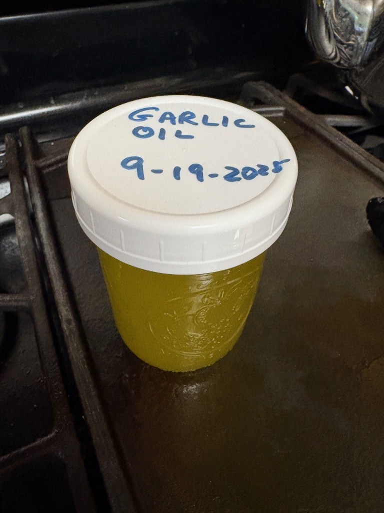 NOTES: I use extra-virgin olive oil, the organic kind from Costco (because it’s the least expensive). I’ve been making this often lately. It gets used rather quickly. I had bought some on one of our travels, but was really stingy using it because it was so expensive. Then I read something online that showed me how easy it would be to do myself. Voila! Full disclosure, I’m not sure if it’s shelf stable or what. I have used it all up within a couple weeks, so for me it is no problem. I also live in a cold climate, so it’s not like a toxic environment for the growth of bacteria. These are things I don’t really worry about. I’m from a locale that would have probably been considered third-world regarding electricity and/or refrigeration when I was a child. On an aside, a friend who is a load-master here in Anchorage posted today that his last barge of the season to Nome had departed. A flood of memories washed over me from when I was a young child, of my mother’s excitement when the first barge would arrive in Nome in the spring. Count your blessings! Name them one by one!