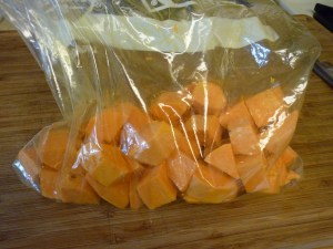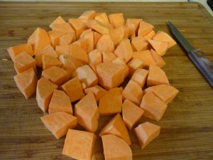 3 large sweet potatoes, peeled and cut into 1” cubes (about 6 cups)