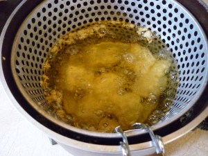 Deep fry in batches at 375 degrees until golden brown. I deep fry in canola oil using an old Fry Daddy that I bought at a garage sale. Drain on paper and serve with cocktail sauce or tartar sauce or lemon juice or malt vinegar or nothing at all. Delicious!