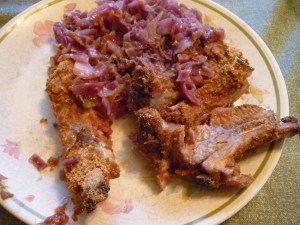 This may well be my favorite dish. I think it’s the bread crumbs sprinkled on the ribs that adds that perfect texture. The recipe comes from Sunset Magazine’s November 1990 issue. I often make my own sauerkraut and the flavors are sublime. If you don’t have homemade sauerkraut, then the next best is the kind found in plastic bags in the deli section of the grocery. Next best is the chilled kind found in the cooler. As a last resort go ahead and use the canned found on the shelf. Sauerkraut is cabbage cured with salt. That’s it.