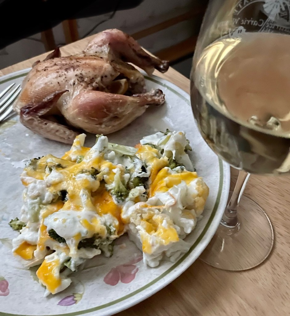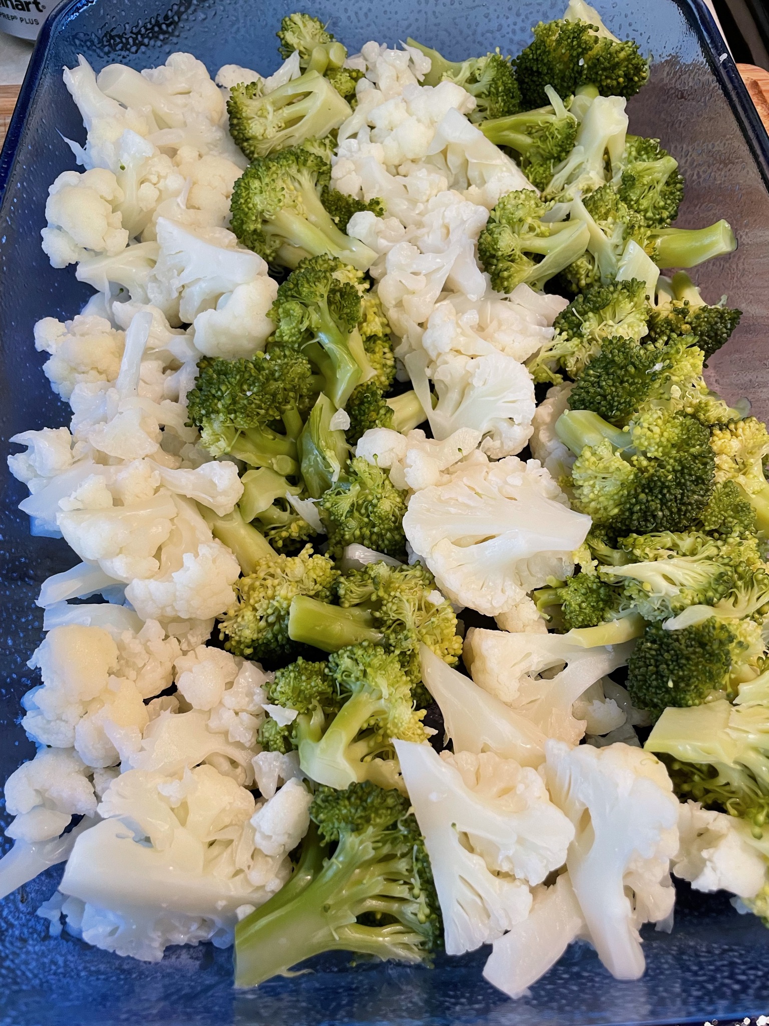 NOTES: If you’ve prepared this ahead of time and then chilled it, it’s going to take longer to bake. I really don’t care for nutmeg and so I seldom use it in this dish. But I really like white pepper, so that I do use. The original recipe says to cook the vegetables ahead of time to crisp-tender and then rinse with cold water — I’ve never done that. I just cook the vegetables by boiling or steaming and then arrange them in the baking dish.