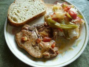 I opened a package of pork loin rib chops the other day only to find one pork chop and the rest pork steaks. A quick change of plans was in order, but fortunately I had a really great pork steak recipe and all the ingredients. This recipe is based upon one found in The Best of Food & Wine (Doubleday, 1984) and is a dinner staple in my repertoire.