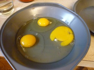 Beat 2-3 eggs (I used 3 extra large and it was too much for my one little eggplant, but I wish, I wish I had made these snacks using three of the little eggplants).