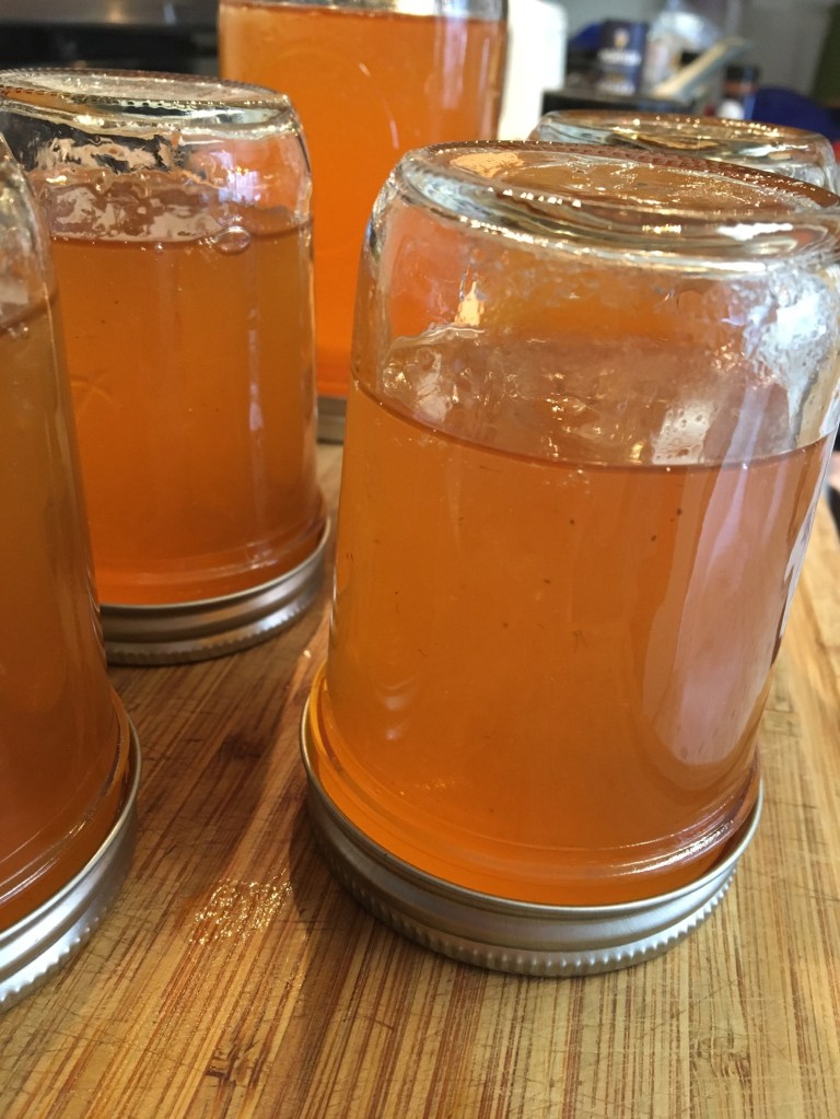 Wipe the rims of the jars and screw on the lids. Turn the jars upside down for at least thirty minutes (or as long as hours and hours–doesn’t matter). If the fruit is floating, give the jars a shake every once in awhile. Turn the jars right side up and let cool completely before marking and storing.