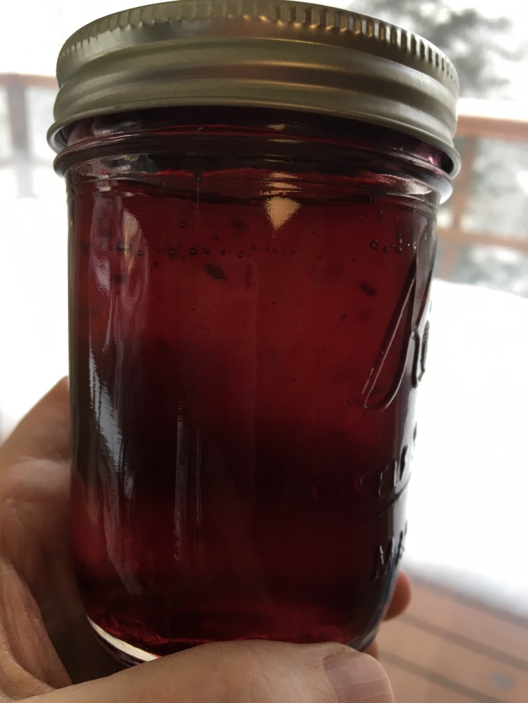 I usually, not always, use Certo Liquid Fruit Pectin for my jam. The recipe booklet that I use is from 1975 when the liquid pectin came in bottles. Now the pectin comes in sealed envelopes and each envelope is equivalent to one half-bottle. My recipe booklet is falling apart. The new recipe sheet that comes inside the packages now isn’t as comprehensive as the old one. I do not water-bath can my jam. There is enough sugar in it to act as a preservative. Using canning lids keeps air from getting in. When I was a child, my mother only used paraffin to cover the jam and many people still do it that way.