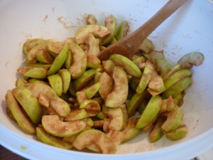 Like I said above, usually I would peel the apples, but these were so small that I didn’t. You will need to use a very, very large bowl.